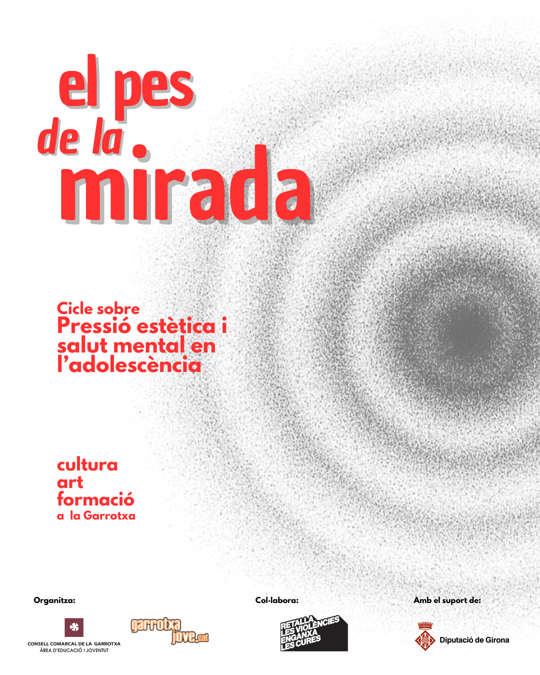 El pes de la mirada és un projecte cultural, educatiu i comunitari itinerant que té com a objectiu sensibilitzar sobre la salut mental juvenil i generar espais de reflexió sobre la pressió estètica que afecta adolescents i joves.